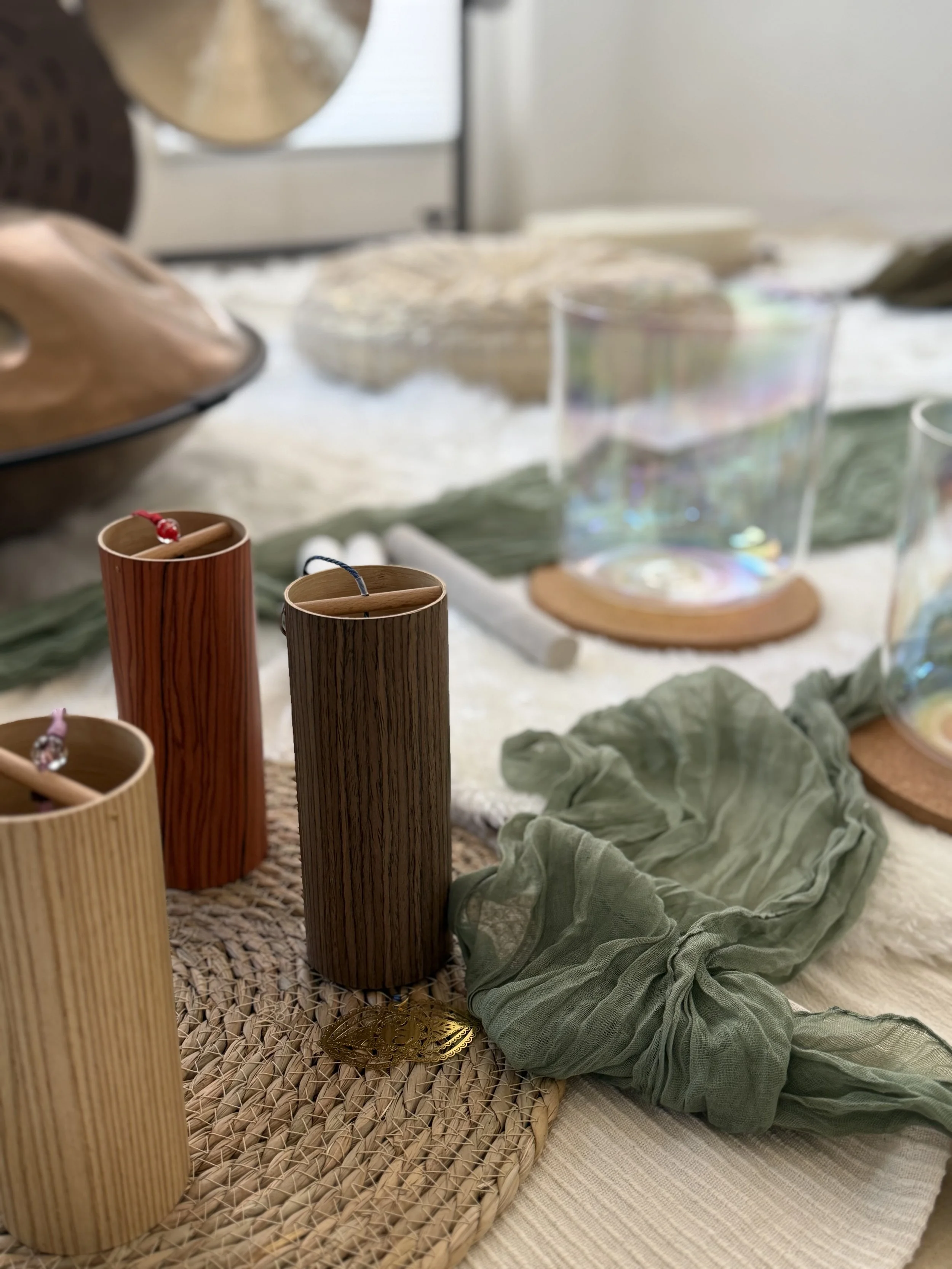 Sound healing is a powerful practice that uses vibration and frequency to bring your body, mind, and energy into harmony. At Rooted Strides, I use a variety of sacred instruments including crystal singing bowls, gong, buffalo drum, wave drum, koshi chimes, crystal harp, and seed rattle each chosen for its unique energetic quality.